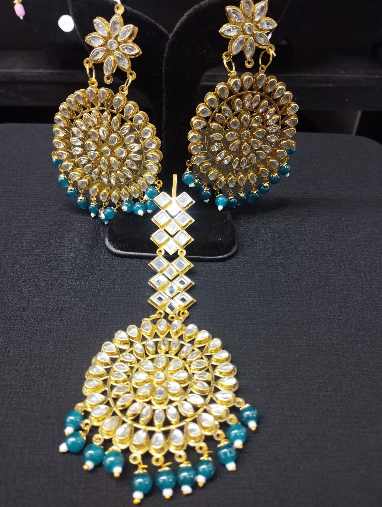 Teal Earrings & Tikka